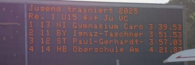 Am 21.09.2025 ging es für fünf ausgewählte Schüler des Paul-Gerhardt-Gymnasiums mit der Trainerin Frau Senst zum Bundesfinale nach Berlin. Nach der Anmeldung wurde die Regattastrecke in Berlin Grünau überprüft und getestet. Am Montag stand ein abwechslungsreiches Kulturprogramm auf dem Plan. Am Dienstag begannen die Wettkämpfe. Nach dem Aufwärmen ging es zum Start. Der Vierer mit Steuermann errang den 3. Platz. Am Nachmittag startete der Gig-Doppelvierer und erlangte das B-Finale. Am Mittwoch zeigte sich die Stärke der fünf Jungs: Platz drei im B - Finale. Was für ein tolles Erlebnis und Ergebnis! Einen riesigen Dank für die Vorbereitung und Betreuung geht an Frau Senst vom Ruderzentrum Zschornewitz.