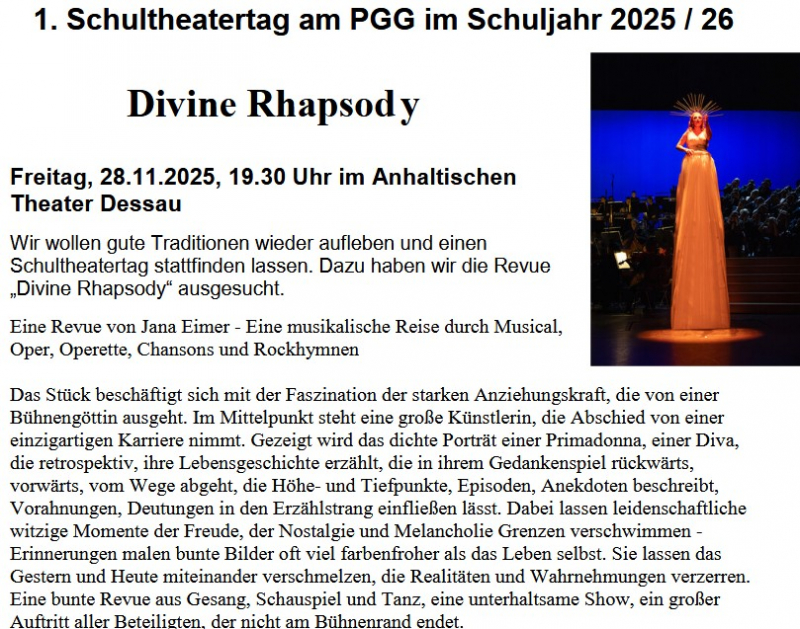 Endlich wieder konnten dank der großzügigen Förderung durch die Schule und den Förderverein 21 Chorsängerinnnen und -sänger sowie 10 Schauspielerinnen am 16. September 2025 zum Probenlager nach Dessau reisen.